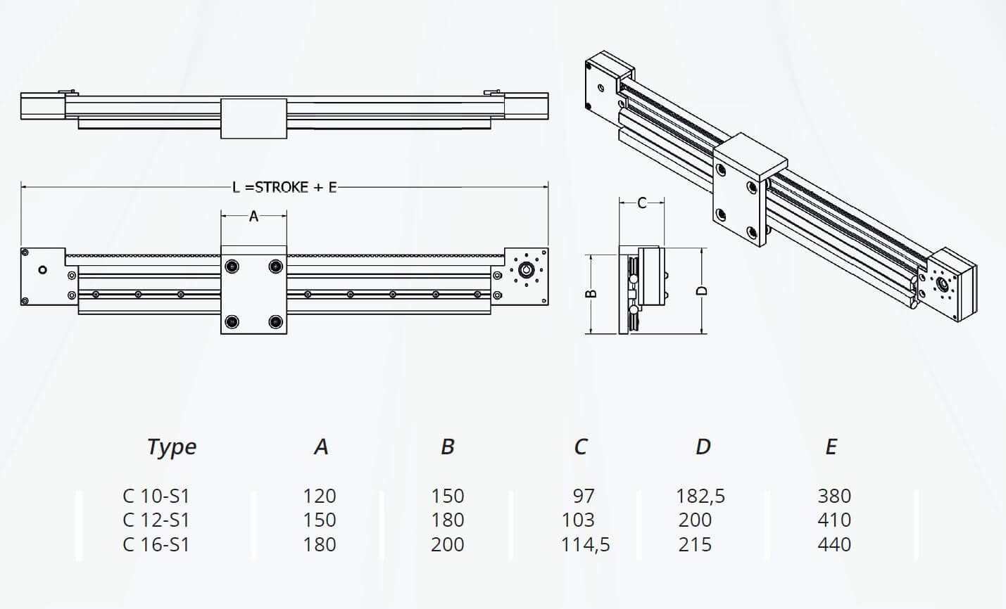 The LTC-TR-S1 is a linear unit with toothed belt drive and guide wheel system.